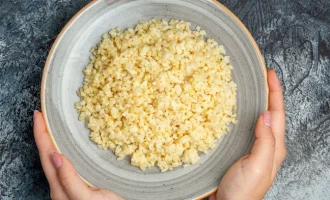 - Ajouter les œufs durs coupés en morceaux et le fromage râpé et mélanger soigneusement.